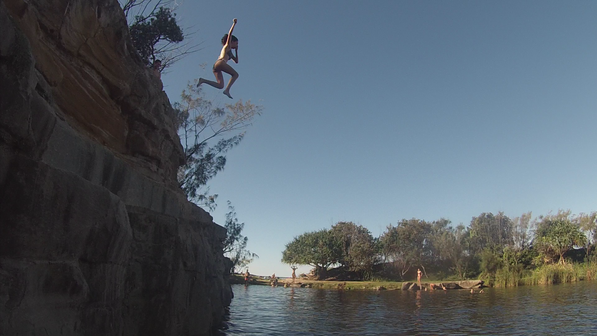 But then the time came to leave. Marije, Frances, Remo, and I took the Greyhound bus from Coffs Harbour to Yamba after we said goodbye to the group at Coffs. In Yamba, the YHA welcomed us through the means of Shane. Now, Shane is somewhat of an urban legend around these parts of Australia and we had been warned about him. He’s mainly known for his infamous tour – aptly named Shane’s Tour – that takes you around Yamba. The tour leaves in the early afternoon, and other than “Good luck” and “Be careful”, nobody will tell you anything about the tour. This is because Shane’s motto is simple: what happens on tour, stays on tour. Therefore I won’t tell you much, but I’ll divulge the following: GO ON SHANE’S TOUR. It’s exhilarating, terrifying, and amazing. The picture below is the sneak-peek I’ll share with you, as cliff-jumping is the part of the tour that’ll make you want to go most.