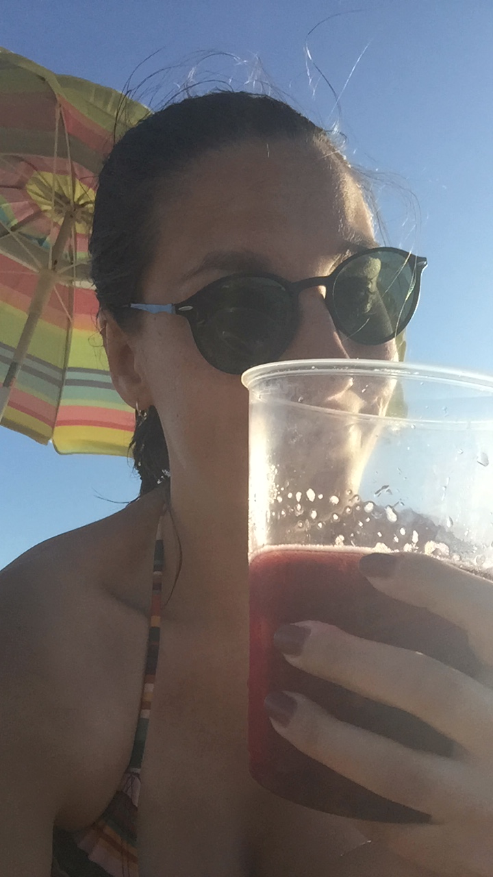 Previous Image Next Image ECBDE98E-133D-4887-94C1-593F98FF788C A semi-permanent state: on the beach, in a bikini, with a glass of sangria.